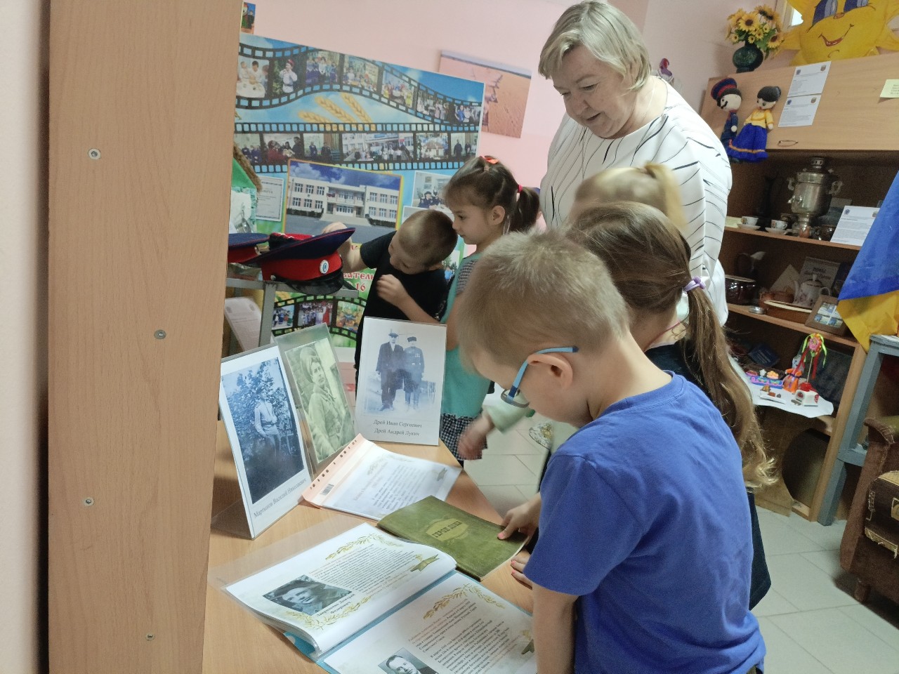 Воспитанники узнали о боевом пути и героических подвигах казаков в годы Великой Отечественной войны. На выставке представлены фотографии не только прославленных казаков, но и фотографии членов семьи коллектива и воспитанников детского сада.