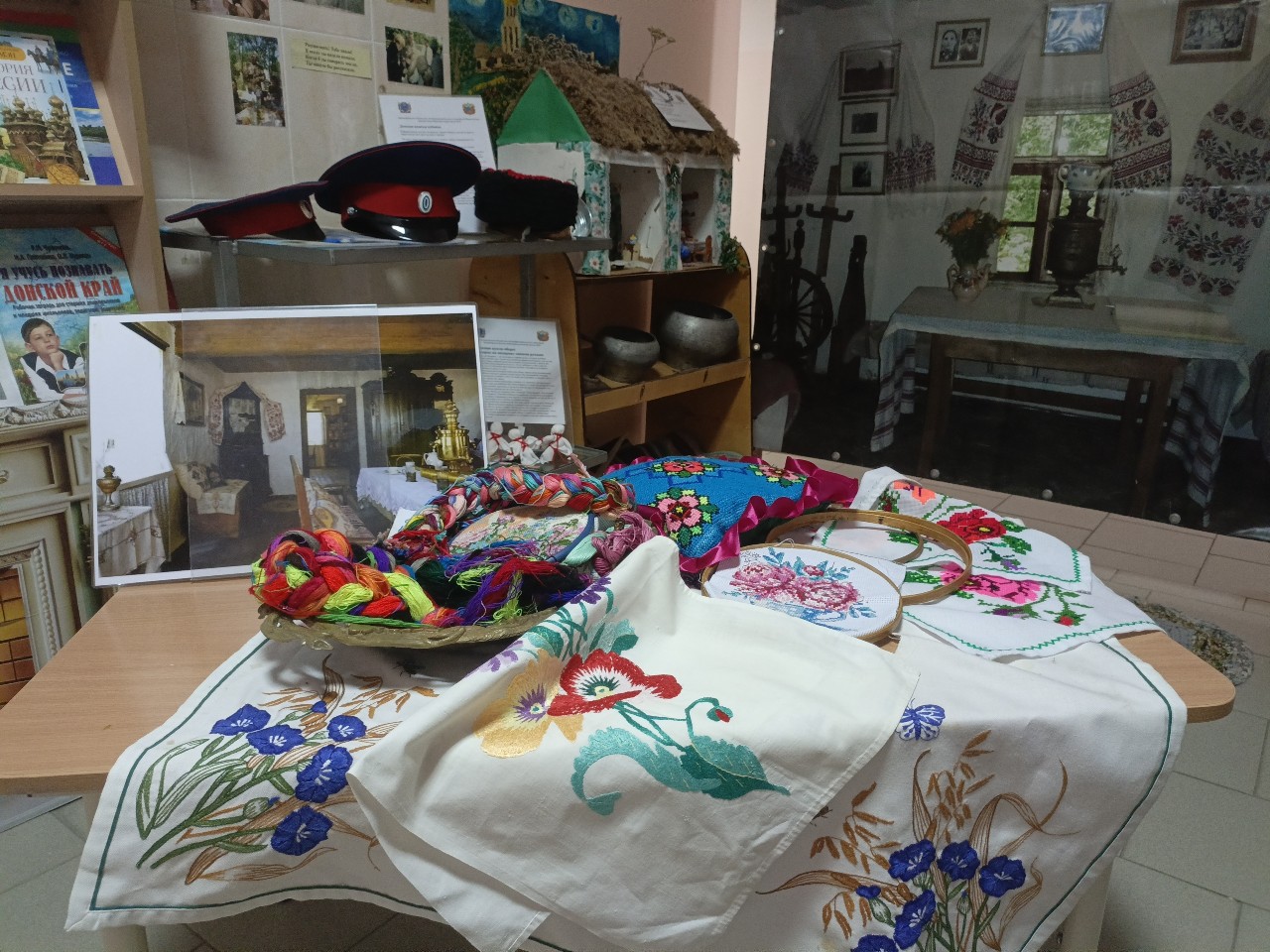 На выставке были представлены образцы традиционной казачьей вышивки на одежде, полотенцах и скатертях.