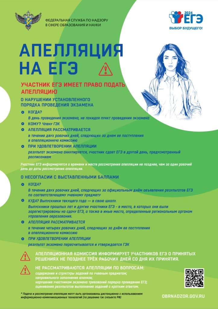Апелляция о несогласии с результатами ГИА подается в течение 2-х рабочих дней после официального объявления результатов экзамена. Конфликтная комиссия рассматривает апелляцию не более 4-х рабочих дней с момента ее подачи.