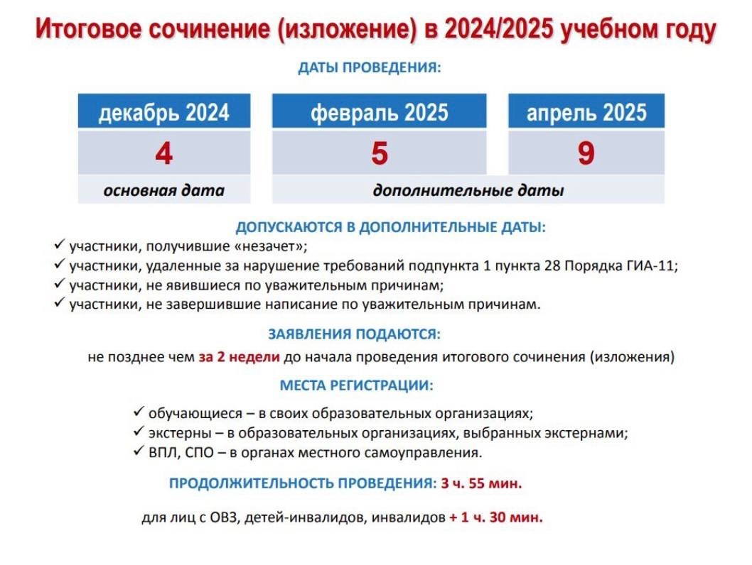 О сроках и местах регистрации для участия в написании итогового сочинения (изложения) в 2024/25 учебном году (для просмотра кликнуть по картинке):